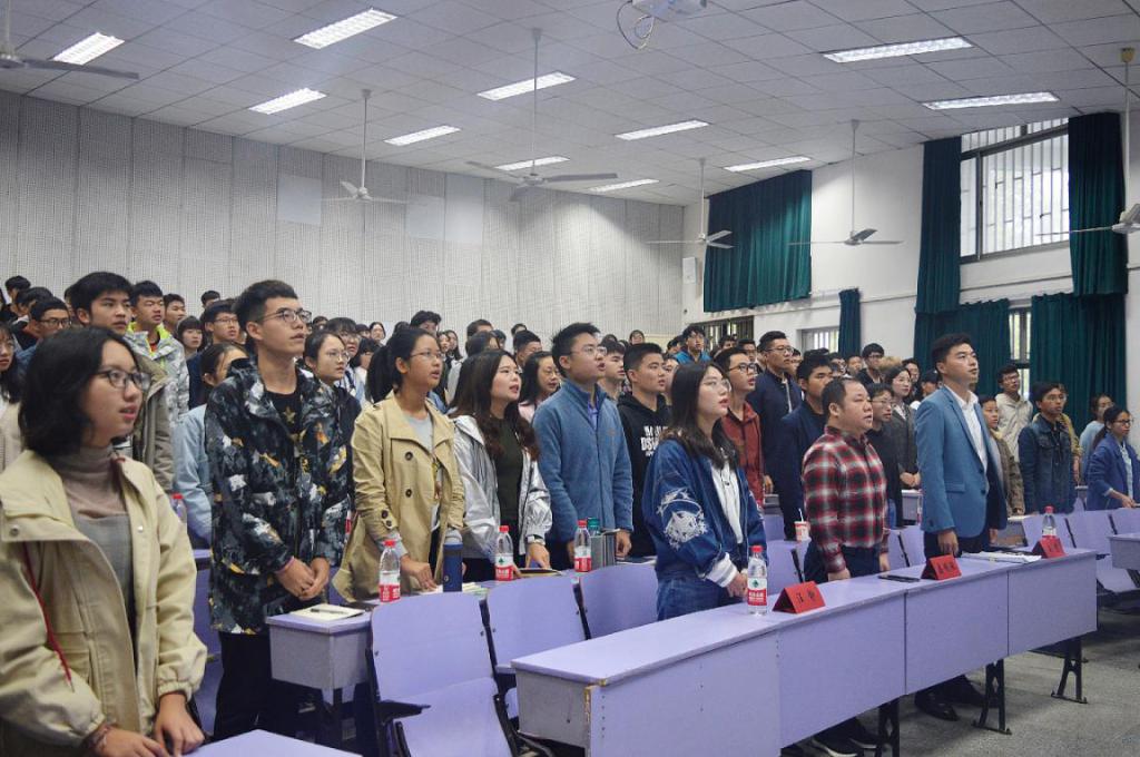 党委副书记姜明敏老师、团委书记王碧老师、兼职辅导员汪静老师和全体学生干部参加大会。大会从全体奏唱团歌开始,嘹亮的歌声不仅展现了青年的活力与朝气,更展现出了环院学生积极向上的精神面貌。