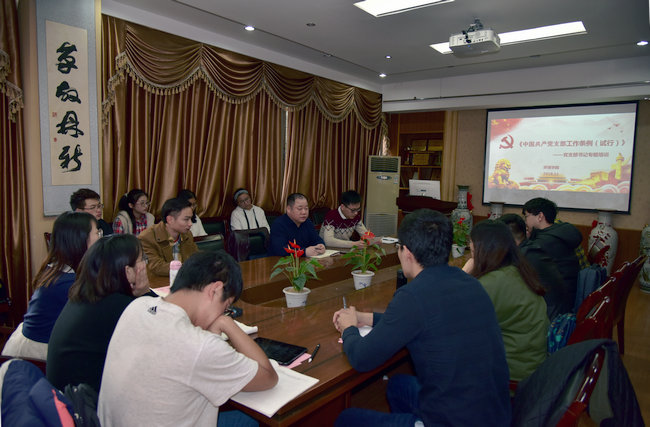 学生党支部书记专题学习《中国共产党支部工作条例(试行)》(以下简称《条例》)和党的组织生活的基本制度,校党委组织部冷再心、环境刮刮卡