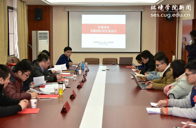 党委副书记姜明敏,水资源与水文地质系刘延锋副教授,环境科学与工程系张伟军副教授、何靓副教授,团委书记王碧及创新团队学生代表参加座谈会。