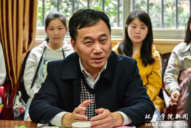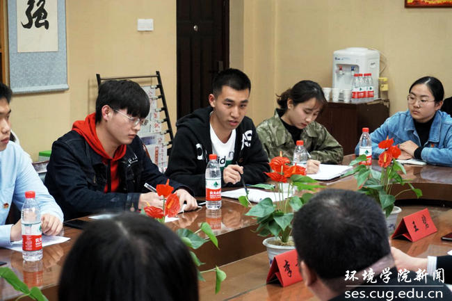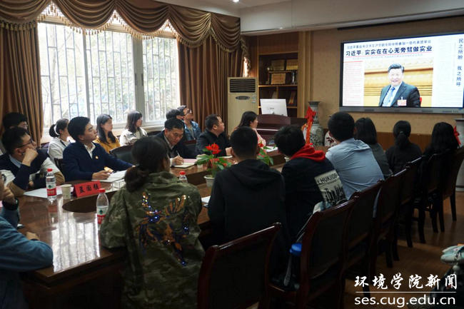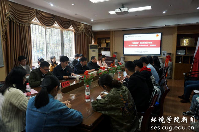李素矿作总结讲话。他对团支部成员积极认真学习“两会”精神表示肯定。他强调,学习贯彻习近平总书记“两会”期间的重要讲话和全国“两会”精神,是当前和今后一个时期的一项重要政治任务,希望“张国旗”班团支部做好学习和践行习近平总书记“两会”期间的重要讲话和全国“两会”精神的排头兵,充分发挥示范引领作用。他说,习近平总书记在今年“两会”期间再次强调了生态保护的重要性:生态文明建设是“五位一体”总体布局其中一位;“坚持人与自然和谐共生”是新时代坚持和发展中国特色社会主义基本方略其中一条基本方略;绿色是新发展理念其中一大理念;污染防治是“三大攻坚战”其中一大攻坚战。他强调,“张国旗班”团支部成员要认真学习专业知识,加强专业本领,以优秀校友张国旗为榜样,争做自然资源、生态环境保护和生态文明建设的铁军,德智体美劳全面发展的社会主义建设者和接班人,红专能优、争做时代先锋,担当民族复兴大任的时代新人。