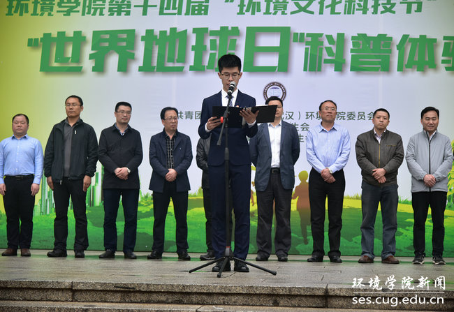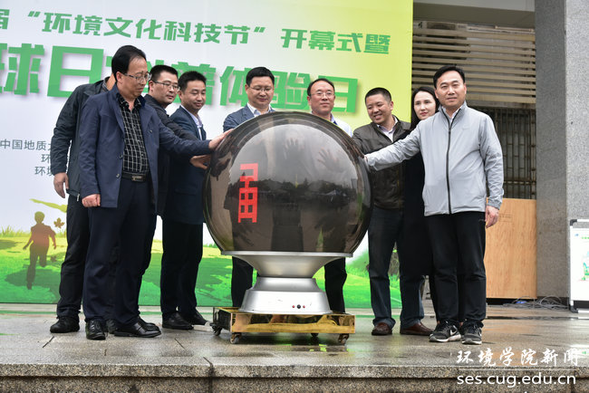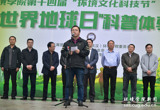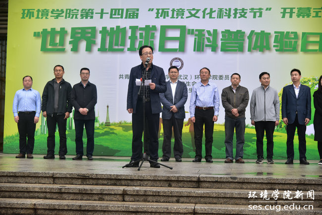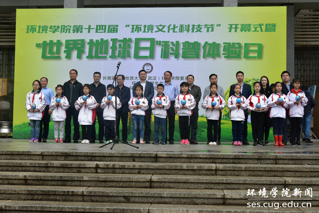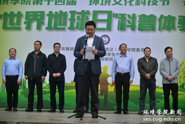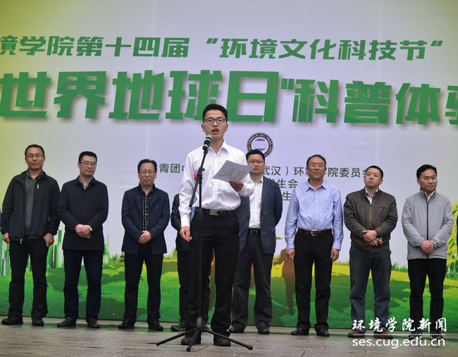 在主楼前广场举行第十四届“环境文化科技节”开幕式暨“世界地球日”科普体验日活动。副校长刘杰,研究生院常务副院长张宏飞,教务处处长周建伟,学生工作处处长邬海峰,就业创业指导处处长严嘉,校团委副书记朱荆萨,党委宣传部副部长陈华文,附属刮刮卡