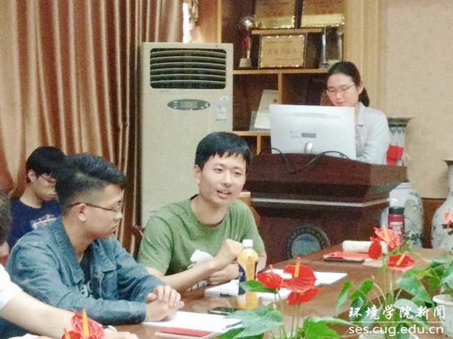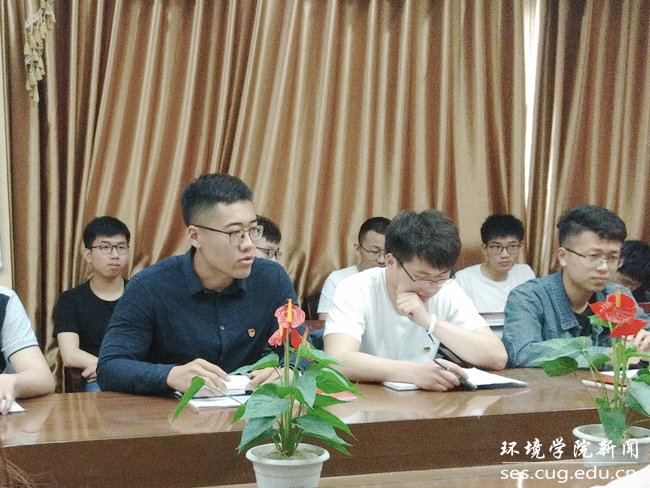 支部书记韩鹏发言。他向兄弟高校的14位党员同志介绍了近一年支部建设情况。水文党支部始终秉承“同频同向”的理念,积极探索新思路、新方法。支部严格按照“控制总量、优化结构、提高质量、发挥作用”的十六字方针发展党员,从推优表、积极分子考察登记表、三行一禁表到会议记录,均按要求填写,仔细审查,使发展党员的工作走上制度化、规范化的轨道。支部主题活动方面,组织开展了“中共五大会址”参观活动、湖南省省级贫困村精准扶贫专项调研活动、纪念毛主席诞辰125周年交流分享会活动等,支部成员以新时代青年党员的高标准和严要求,关注国家发展、关心民生动态,自觉肩负起祖国赋予青年的崇高使命。