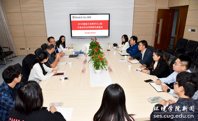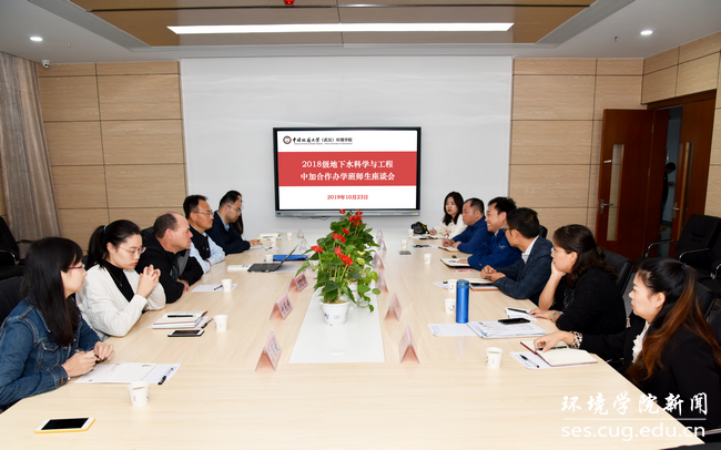 教师代表郭会荣、陈伟,马丽媛、中加合作项目办老师刘凤莲、付苑婷、耿婧参加中加教师座谈。三位教师代表分别就中加合作办学班“地下水科学与工程”专业的课程设置、培养方案、体系优化等方面提出建议和对策。