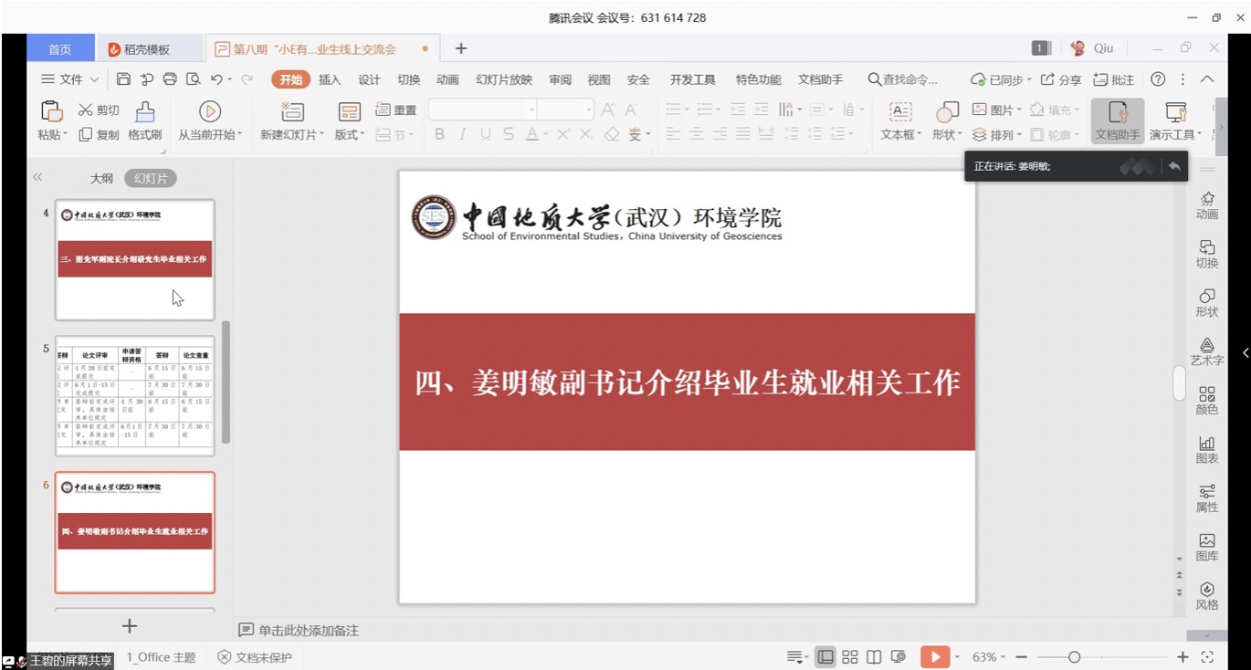 谢先军从研究生复试安排、研究生毕业工作安排、研究生毕业论文审核等方面介绍近期研究生工作情况。他表示,毕业生们须积极应对疫情给毕业、就业带来的影响,认真学习了解当前就业优惠政策,善于抓住机遇。