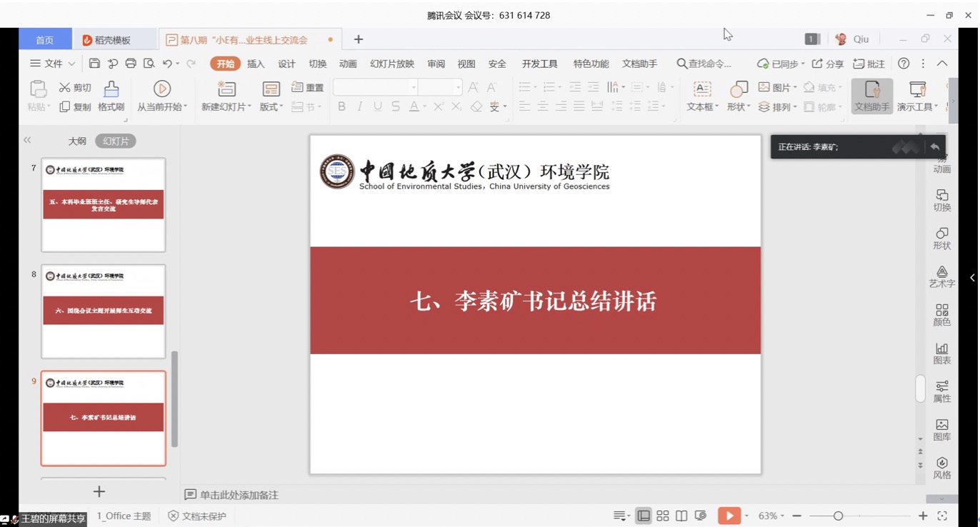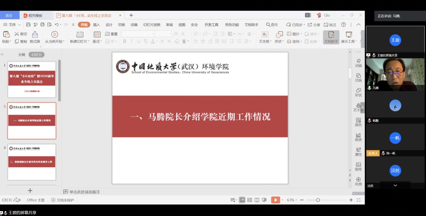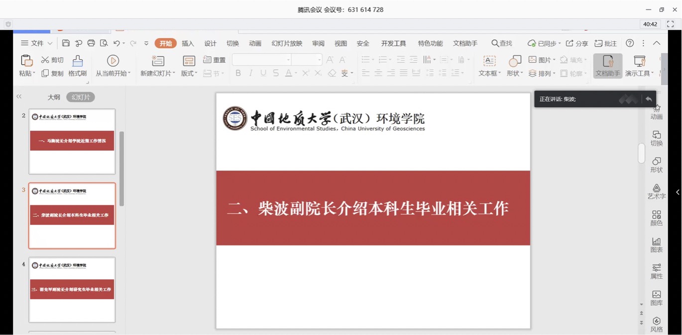 柴波从毕业论文进度安排、课程学分核对清算等方面介绍了本科生毕业相关工作。他强调,顺利毕业是前提。希望同学们居家期间学习不放松,多与导师沟通,认真撰写毕业论文,确保达到毕业要求。