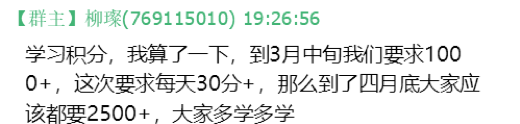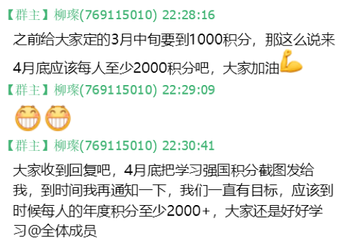 党委关于党员们在“学习强国”APP上学习的要求,党支部又制定了一个小目标,在前一个目标的基础上,要求支部各党员的年度积分在4月底均达到2500分及以上。