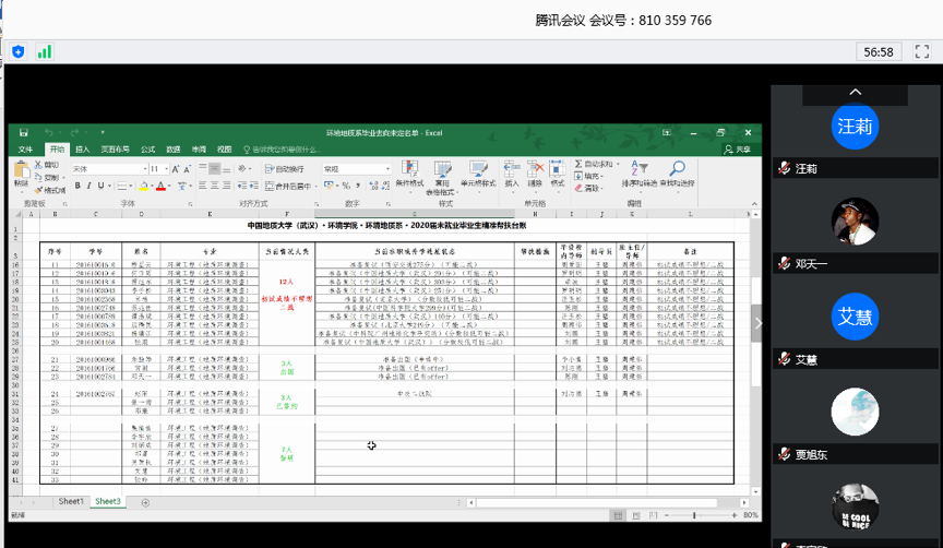 姜明敏副书记介绍环境地质系毕业生就业情况。他讲到,今年就业形势异常严峻,目前刮刮卡