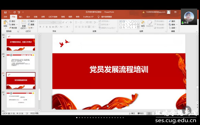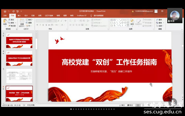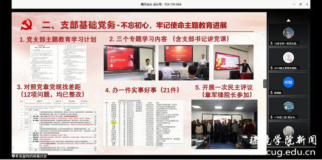 为中心,开展基地引航论坛、“地学之光”理论宣讲团、“又红又专地质人”社会实践,培养卓越专业技能、过硬政治素养、远大家国情怀的人才。疫情期间,将主题党日搬到线上,带领身边群众做好疫情防控工作,积极投身疫情防控志愿服务活动。张曼有同志分享结束后,参会的党员同志积极交流请教,纷纷表示要向基地班党支部学习,努力争创标杆党支部。