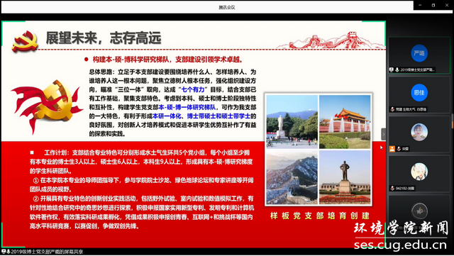 2019级博士研究生党支部书记严璐从支部基础建设、思想引领、绿色志愿服务、生态保护社会实践等多个方面进行了支部介绍,展示了“构建本-硕-博刮刮卡研究