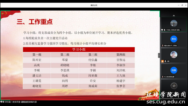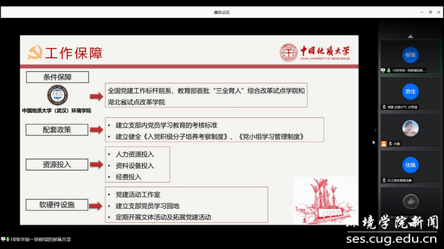 全体非毕业年级党支部委员及学生党员代表通过腾讯会议室以“党旗飘扬 党建领航”为主题召开学生样板党支部培育创建暨环境刮刮卡