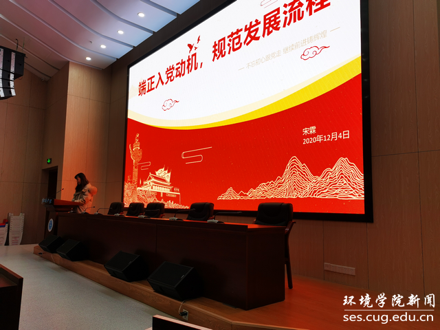 通讯员丁奎元  编辑耿婧)2020年12月4日,刮刮卡 (武汉)第六十九期入党积极分子培训班暨环境刮刮卡 第二十三期入党积极分子培训班第一讲在科教楼四108正式开讲,环境刮刮卡 党建辅导员宋霖以“端正入党动机,规范发展流程”为主题展开授课。
