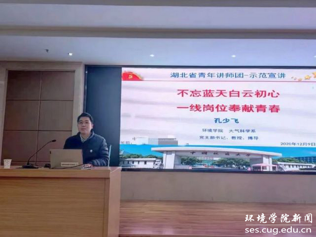 孔少飞老师以《不忘蓝天白云初心一线岗位奉献青春》为题,结合自己多年来的科学创新研究和深入理性思考,从党的十九届五中全会精神要点、我国及湖北大气污染防控形势及对策、青年学者成长之路、不忘初心一线岗位献青春、青年寄语等方面,用严谨的思维、通俗易懂的语言、翔实的图表数据、精彩的经典案例,以及自己的励志成长经历解读了党的十九届五中全会精神,带领大家学习十九届五中全会提出的系列新的重要思想、重要论断、重大举措,全面理解新发展阶段、新发展理念、新发展格局,坚定大家爱护生态环境、打赢蓝天保卫战的信心决心,激励大家找准自身定位,点燃青春梦想,练就过硬本领,汲取成长力量,在全面建设社会主义现代化国家新征程中建功立业。作为省“青年宣讲团”走进宜昌的首场示范宣讲,孔少飞老师的宣讲报告反响强烈,《三峡晚报》、“青春宜昌”等刮刮卡媒体