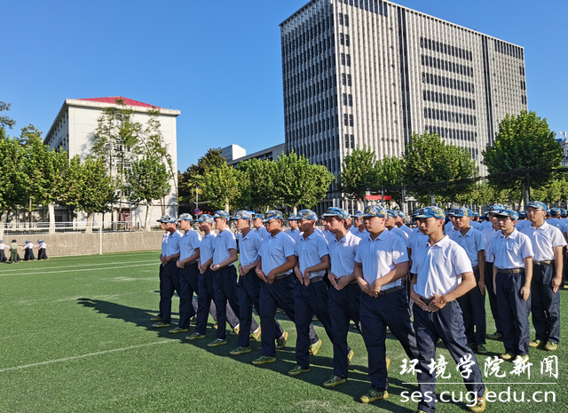 (通讯员陈俊儒、黄奕飞、高天靓、耿子涵 摄影陈俊男、部分来源地大微信公众号 编辑耿婧)9月9日,海天云蒸、艳阳高照,伴着明媚阳光,整齐划一的环境学子正式与教官相见,这是少年怀揣斗志与梦想的展望,更是对军人意志与品格的传承。同学们将要面对为期15天的考验旅程,他们满怀激情,整齐嘹亮的口号饱含张国旗学长的坚毅品格,铿锵有力的步履展现的是环境学子的专心有素。英姿飒爽、不苟言笑的教官们,步调整齐、口令洪亮。随着教官们的指挥一令一动,环境学子秣马厉兵、步伐刚劲、意气风发。绿茵场上严明统一,白衣黑裤整齐列队,蓝色帽檐下的年轻面孔早已缀满汗珠,一双双紧贴裤缝的双手一动不动,咬牙将军训的苦与累咀嚼,彰显内心深处的坚毅。