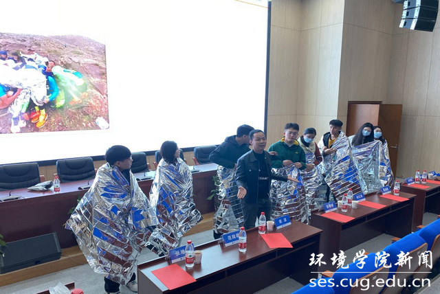 曹志凯老师以《户外安全》为题,讲解失温、溺水、地质灾害等安全问题的预防与脱险策略。培训中的互动环节将现场气氛推向高潮。