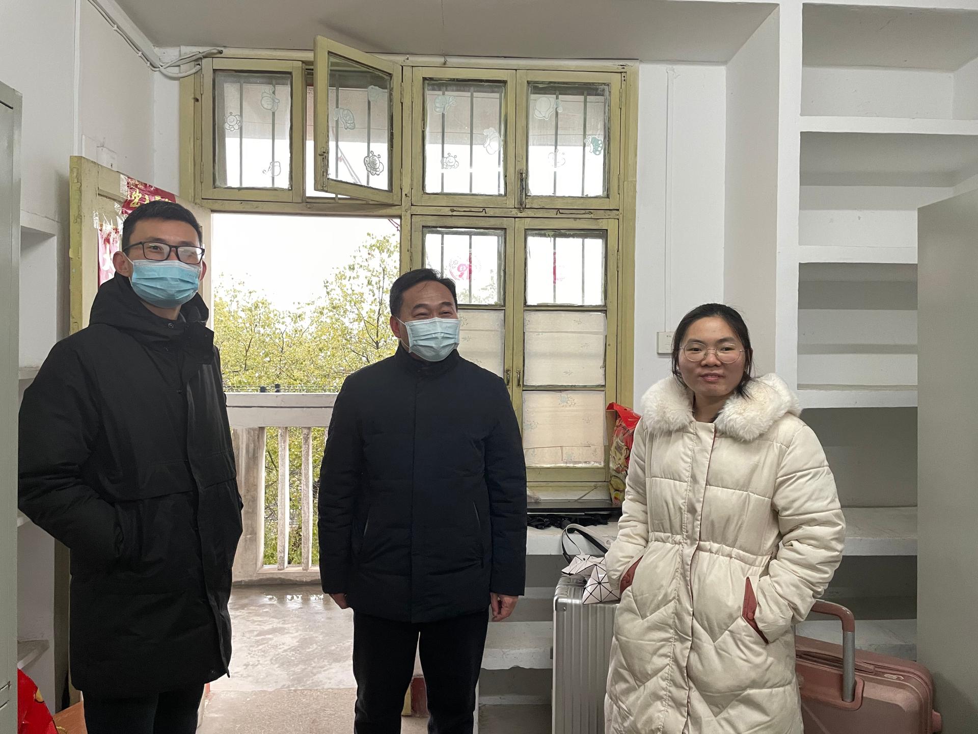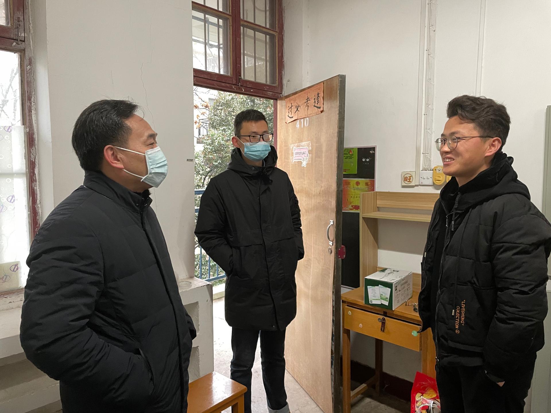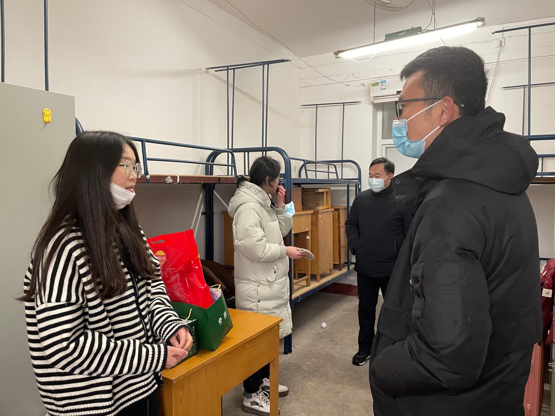 党委书记李素矿,党委副书记王海锋,中加合作办公室学生事务秘书耿婧前往南望山校区54栋、57栋学生宿舍看望春节留校的5名研究生,代表刮刮卡