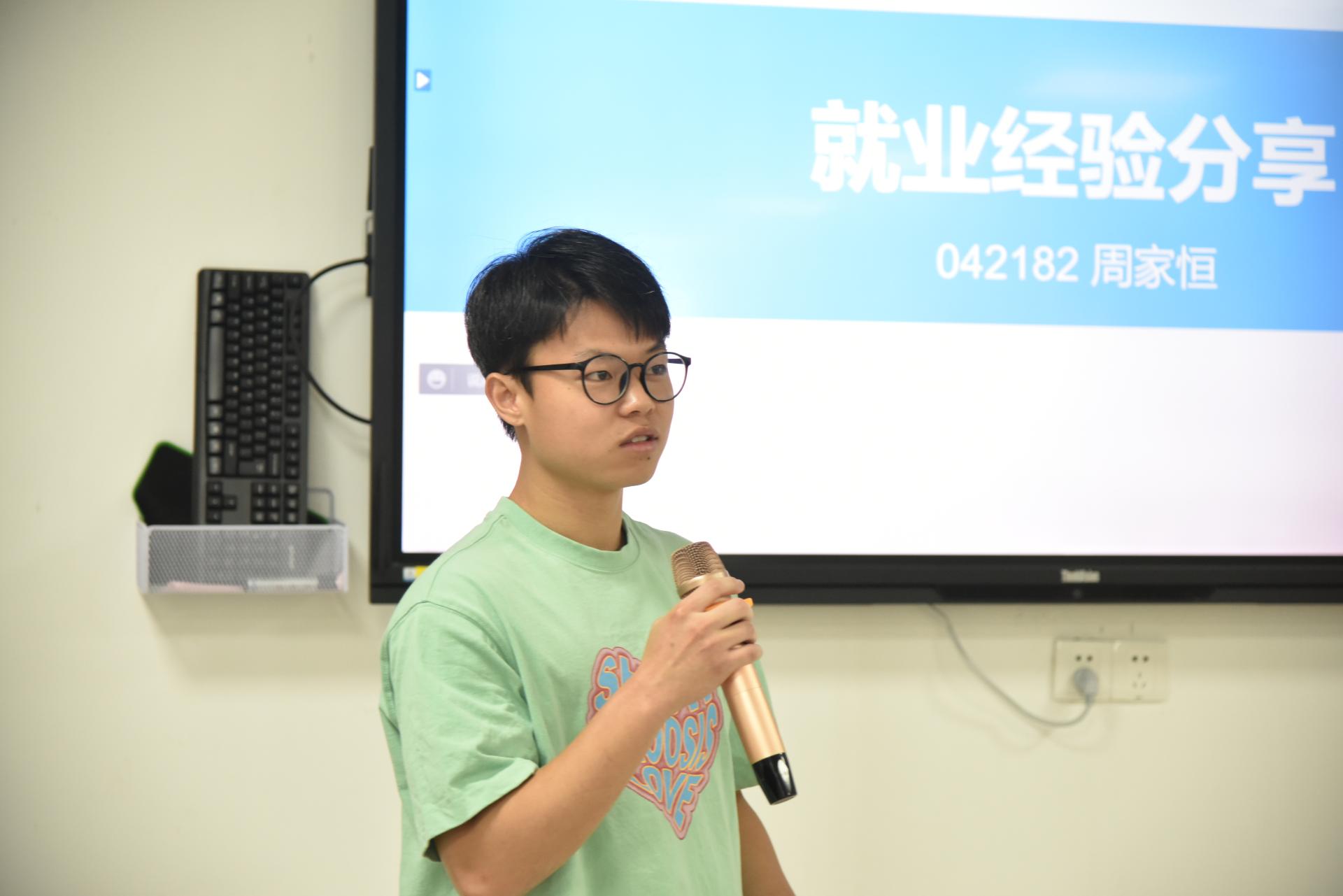 接着,2018级环境工程专业学生周家恒作就业经验分享。他回顾自己的就业历程,建议同学们利用刮刮卡