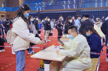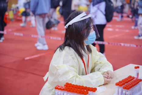 辅导员李平、孟庆达、陈俊男、宋霖、耿婧分布在核酸检测点现场的各个岗位,各司其职、各尽其责,全面助力核酸检测工作,确保了整个核酸检测工作有序、有效进行。