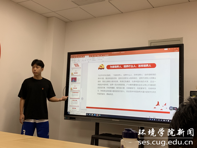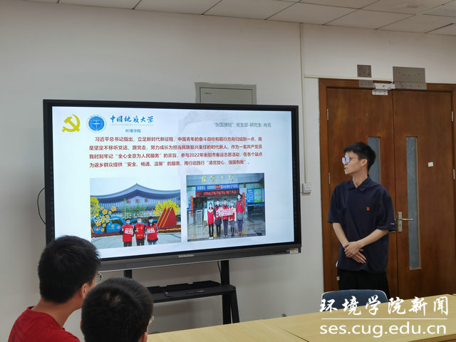 考察时的重要讲话后,我更加深刻认识到中国青年在当今时代所背负的重大使命。肖竞同志从自身志愿经历的角度阐明中国青年“请党放心,强国有我”的信念。邓睿同志结合习总书记讲话中所用的典故,谈到自己的学习生活和仰慕的老师身上闪闪发光的特质。卢鹏宇同志通过对作为志愿者时自身感触的描述表达了当代青年的责任与担当。