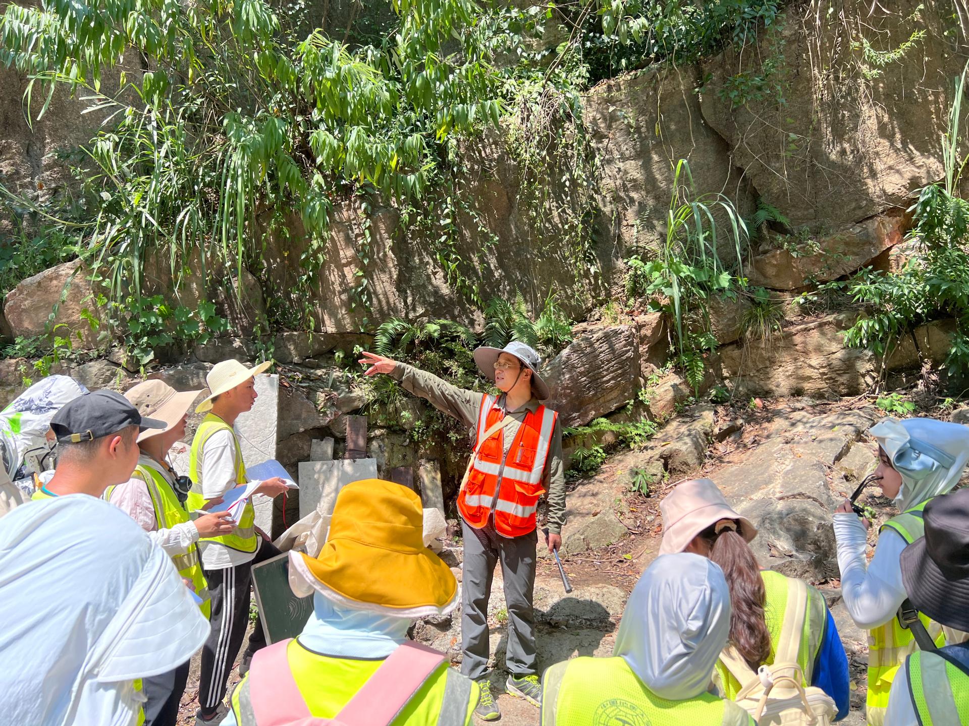 8月9日,李素矿一行跟随中加项目地下水科学与工程专业045211和045212班参加邓村野外实习教学路线。在实习队长王伟老师的讲解中,他和同学们一起,观察认识扬子克拉通最古老的变质岩基底,了解了太古代、古元古代、新元古代地层岩性特点,认识变质岩的特征,感受地质历史沧海桑田的变迁演化。同时,询问了解村民茶叶种植、子女教育、基础医疗、环境卫生、生活质量等情况。