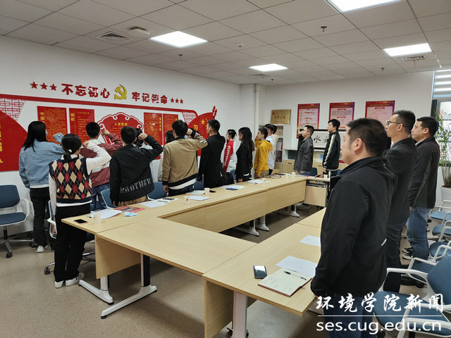 党建辅导员陈俊男主持,在齐唱国歌、重温入党誓词中拉开帷幕。