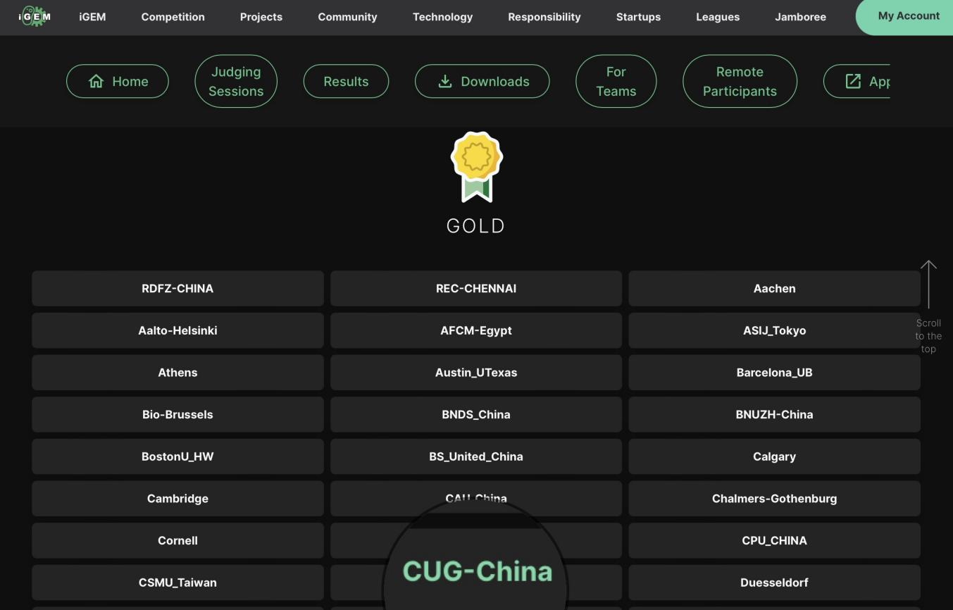 国际遗传工程机器设计竞赛(International Genetically Engineered Machine Competition,简称iGEM)是合成生物学领域的国际顶级赛事,由美国麻省理工刮刮卡 (MIT)于2003年创办,并于2005年发展成为国际赛事。iGEM是以生命科学为主,融合化学、数学、信息科学、工程技术等领域交叉的跨学科竞赛,每年举办都受到广泛的关注,曾多次被《Nature》、《Science》等国际权威科学杂志报道。2022年,iGEM总决赛采取线下和线上参赛相结合的方式进行,包括麻省理工刮刮卡 、哈佛刮刮卡 、斯坦福刮刮卡 、清华刮刮卡 、北京刮刮卡 等国内外知名高校在内的共计356支队伍参赛。由于疫情原因,“CUG-China”团队无法前往巴黎现场参加线下比赛,但团队成员共克时艰,以出色的实验设计、完整的结果呈现、丰富的社会实践和流畅饱满的答辩,赢得了线下评委团的肯定,以高标准通过了大赛金奖评审要求,斩获地大首个这一全球性赛事金奖。