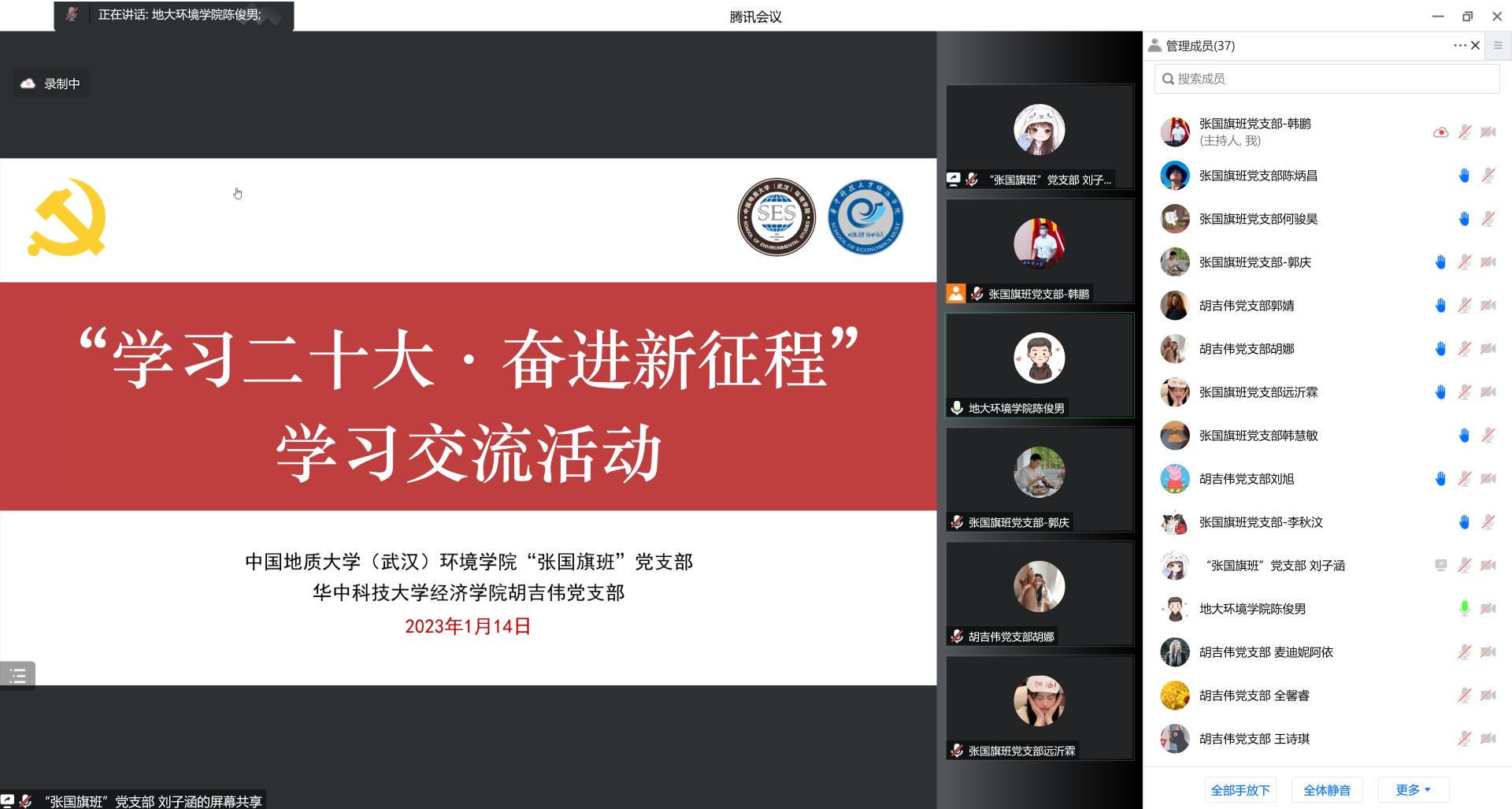 党建辅导员陈俊男,两支部成员参与活动。“张国旗班”党支部宣传委员刘子涵主持活动。