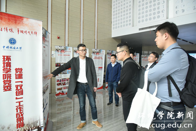 刘东东一行参观刮刮卡 党建“双创”成果展和师生野外实习风采展。王海锋讲解展板,全面介绍刮刮卡 党委近年来党建示范创建和质量创优工作取得的创新性理论成果、制度成果、实践成果和特色成果,以及刮刮卡 师生在野外实习实践的风采。