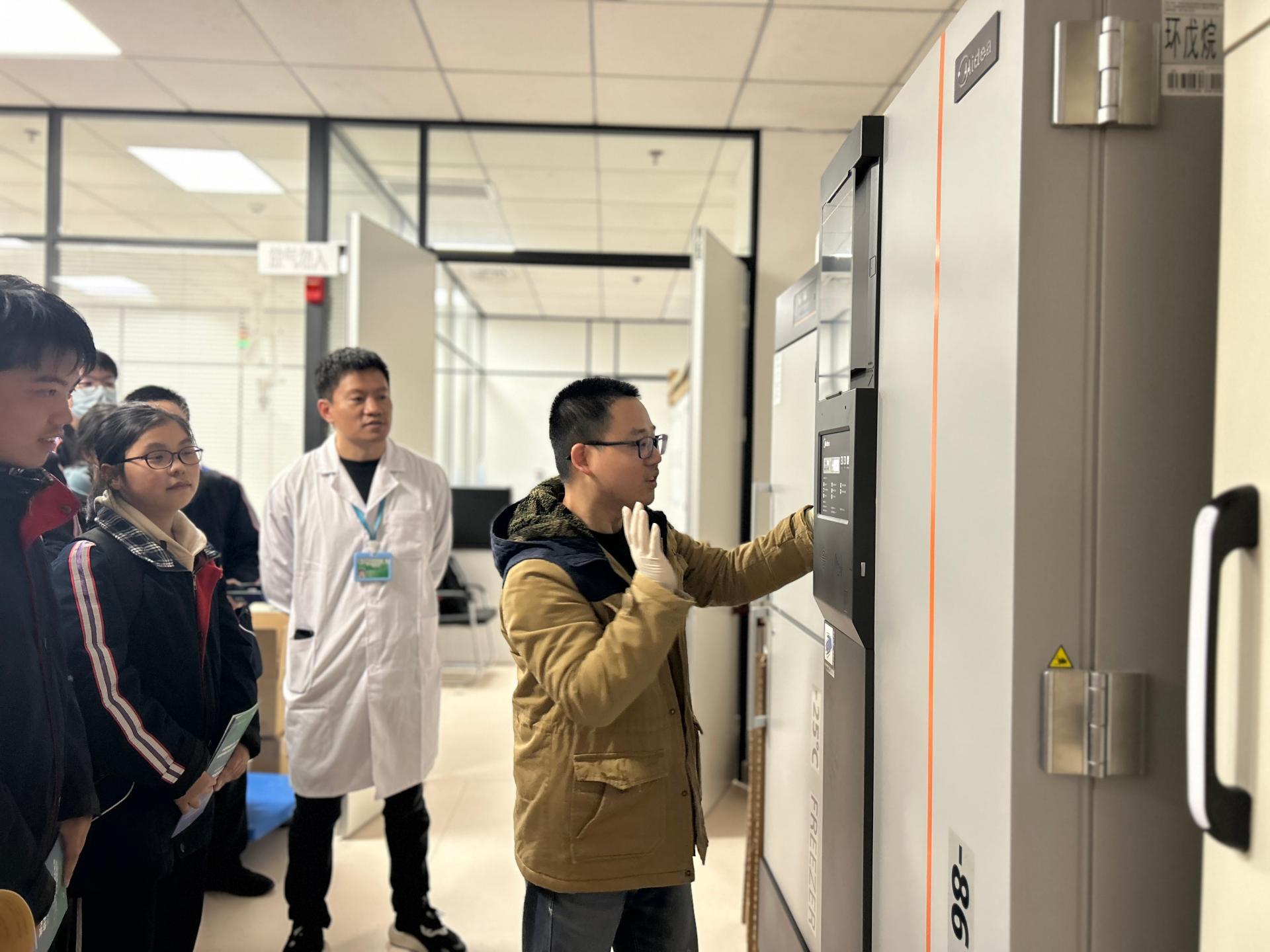 在生物地质与环境地质国家重点实验室,“张国旗班”宣讲团成员带领同学们参观了地质微生物实验室、环境有机化学实验室,向同学们科普了陆地生物与古环境模拟实验、细菌培养等相关知识。