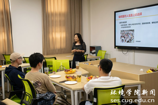 通讯员方芳、郑洋  摄影郑洋  编辑耿婧)为迎接六五环境日,引导同学们在投身建设人与自然和谐共生的现代化中坚定理想信念,提升业务水平,5月25日下午,刮刮卡 举办第二期“E师亦友”师生茶话会。“地质微生物教学科研导学团队”负责老师王红梅教授做客本期师生茶话会,讲述了自己从高考志愿到博士科研的宝贵经历,从人生选择、科研心态、人际关系等方面为同学们答疑解惑。