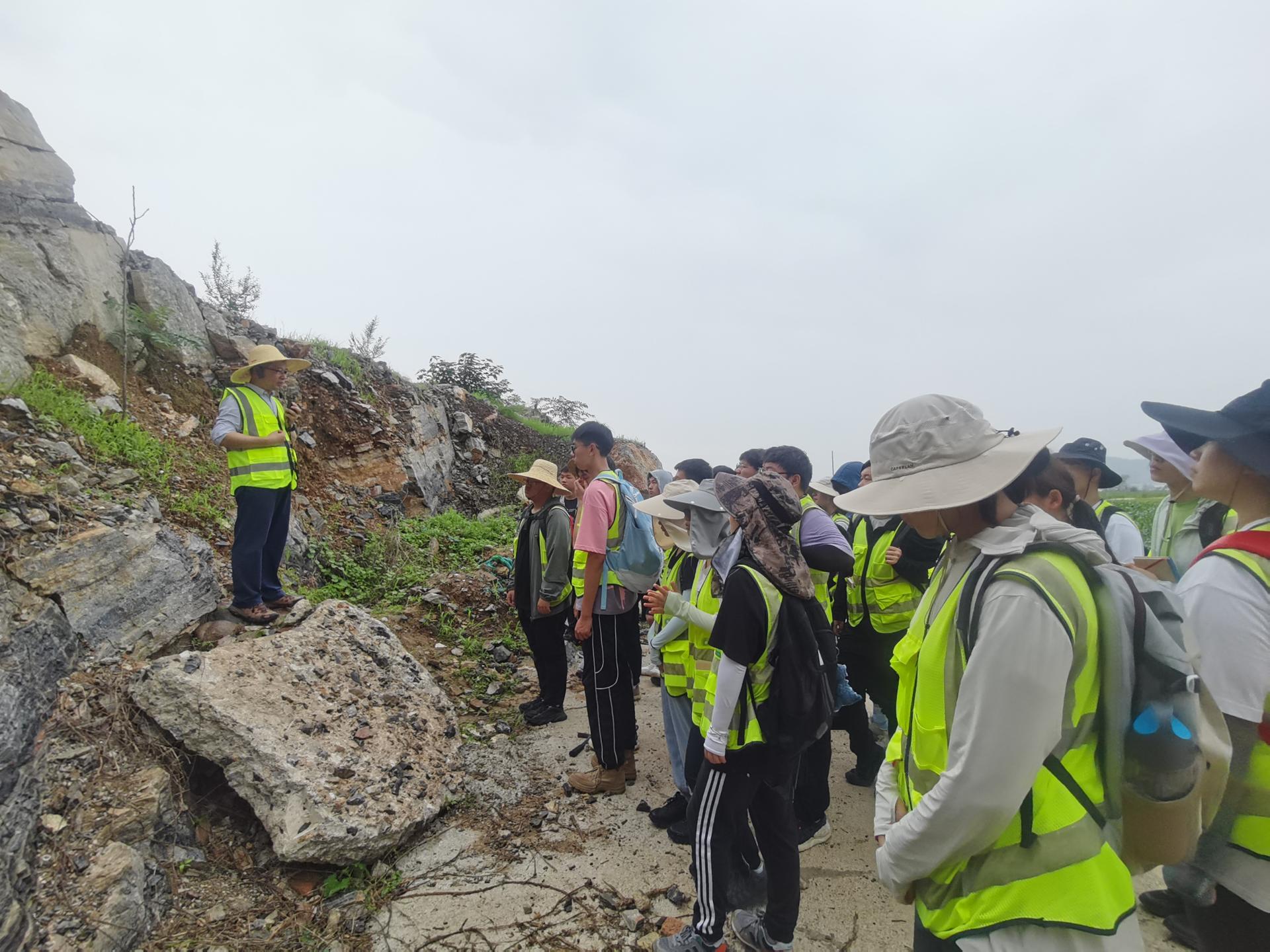 045222班实习师生一同参加太平山南坡地层教学路线。他与实习学生共同聆听带班老师刘运德老师授课,并现场讲解该路线,与师生深入探讨太平山南坡地层。