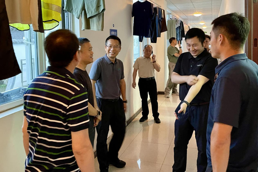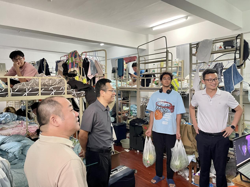 领导一行先走访学生宿舍,看望2022级参与实习的学生,为实习学生送上消暑慰问品,并与他们亲切交流,询问他们在周口店实习站的实习情况、兴趣爱好以及遇到的困难,给予学生们积极的建议和鼓励,叮嘱他们在实习中务必要提高安全警惕,确保安全第一。