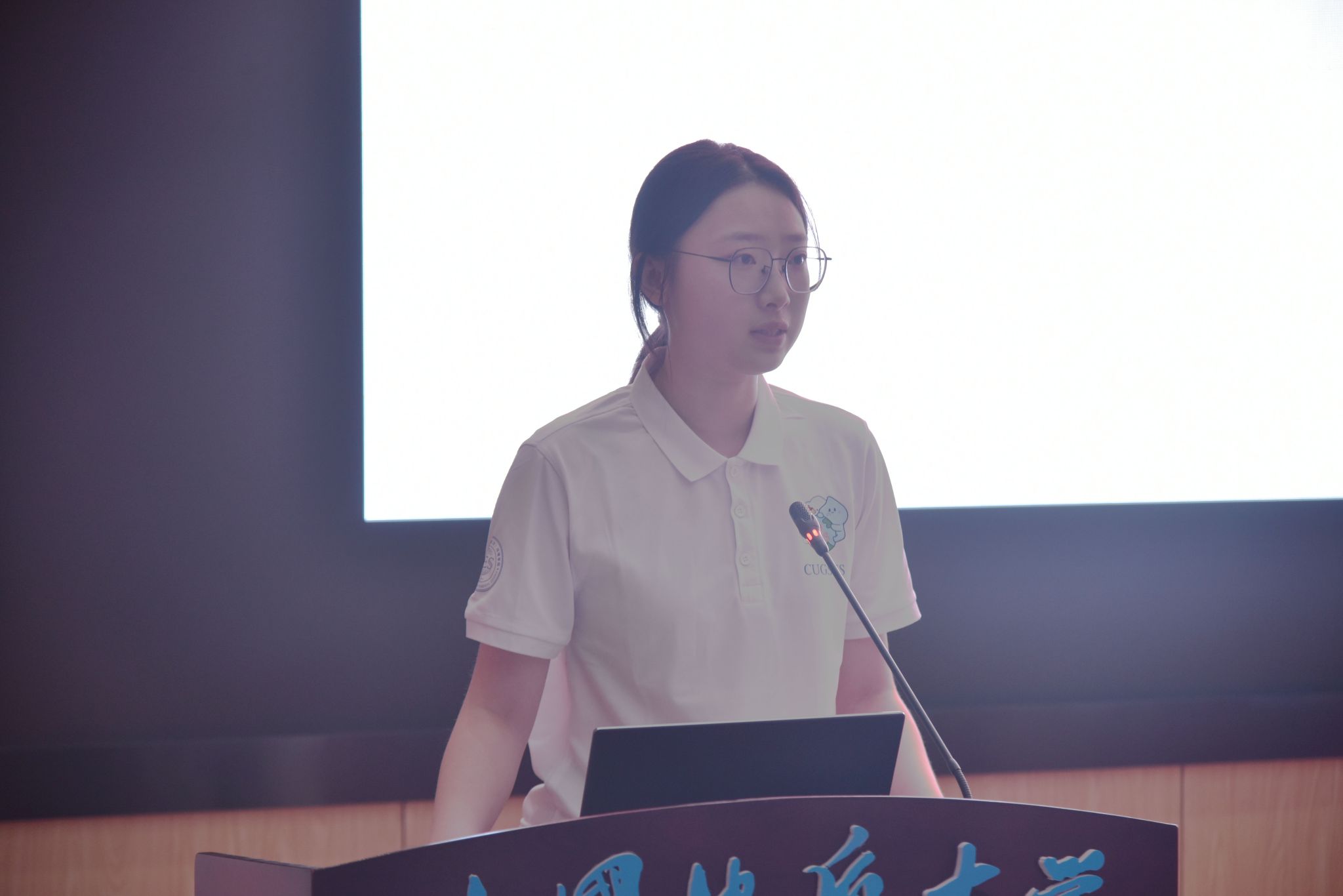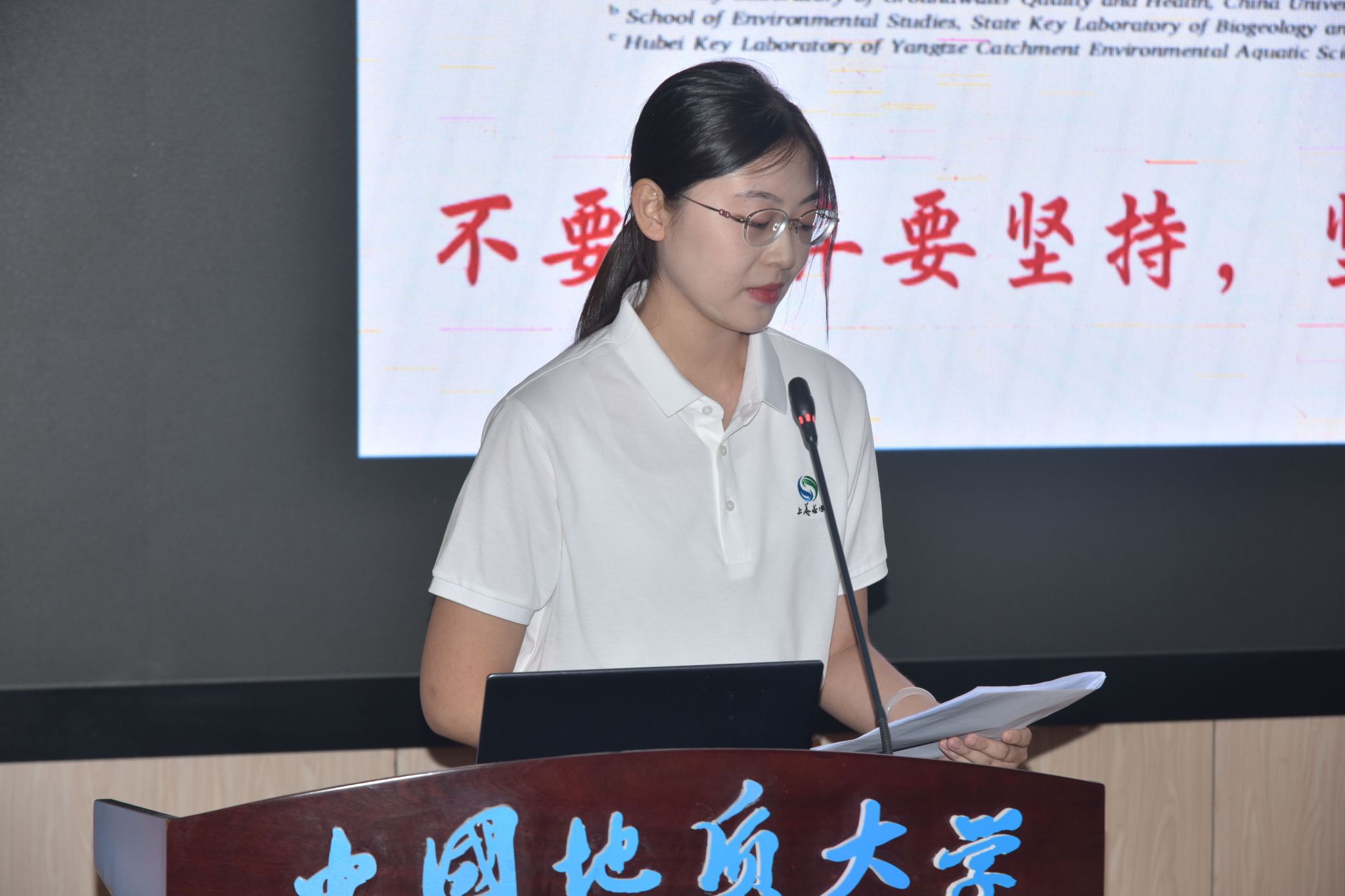 高年级研究生代表、2022级水文地质学专业博士生田昊以“深深扎根,向阳生长”为主题进行分享。她以自身转专业硕博连读的经历向同学们分享三个关键词:一是学会坚持,研究生生活可能遇到种种困难,要相信曙光终会出现;二是学会吃苦,任何磨难终将成为成长道路上的垫脚石;三是学会开拓,不要固步自封,换个角度看待问题可能会收获不一样的感悟。她祝愿同学们在环境刮刮卡 这片沃土上,深深扎根、向阳生长,仰望星空、脚踏实地,谱写人生新的华章。