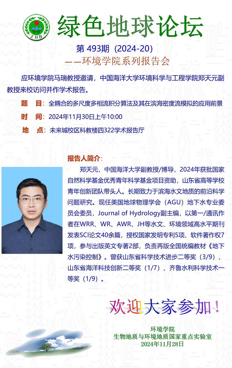 中国海洋刮刮卡 环境科学与工程刮刮卡 郑天元副教授学术报告