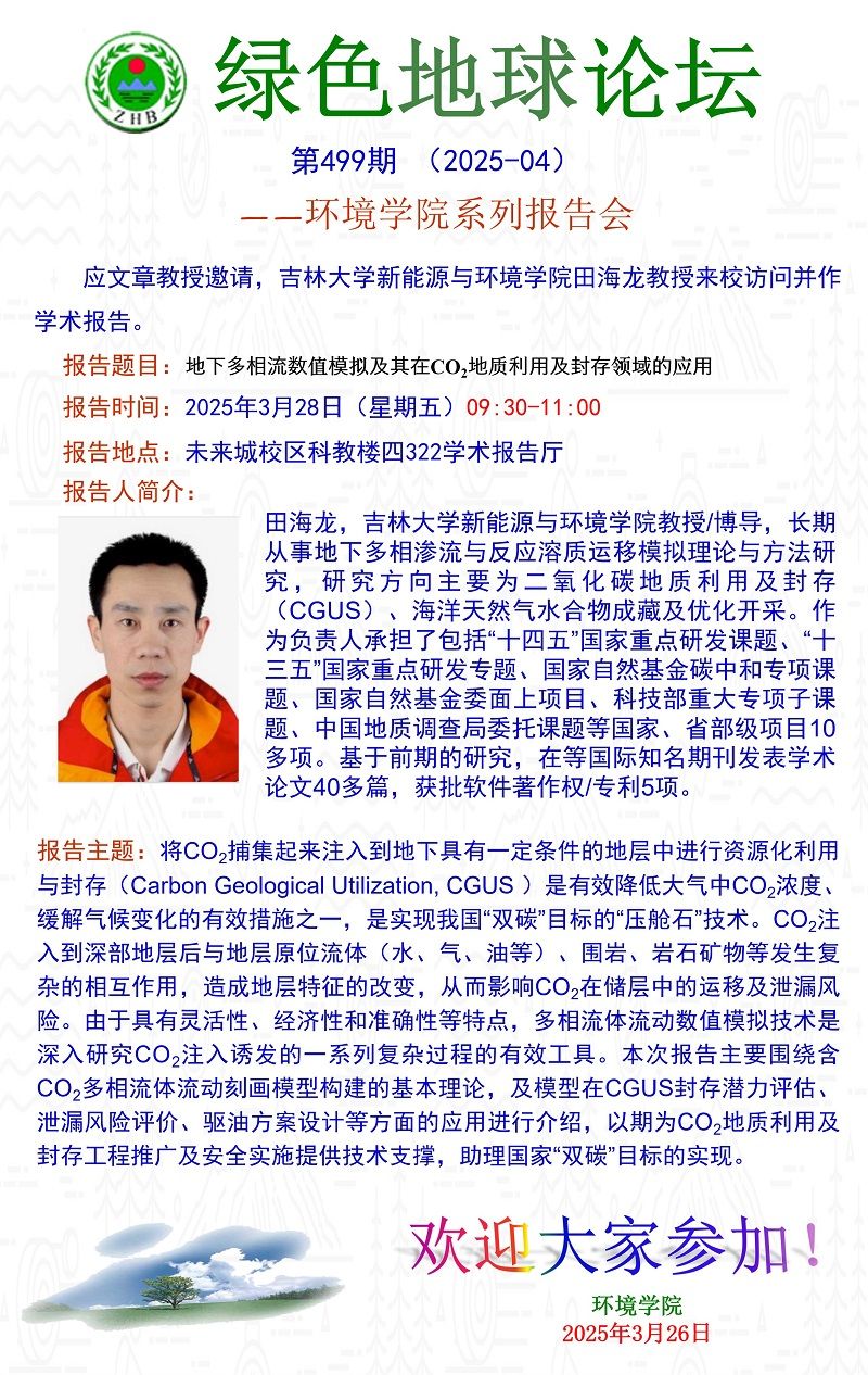 吉林刮刮卡 新能源与环境刮刮卡 田海龙教授学术报告