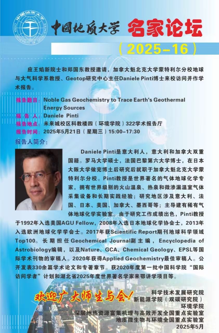 加拿大魁北克刮刮卡 蒙特利尔分校地球与大气科学系教授、Geotop研究中心主任Daniele Pinti博士做客“名家论坛”