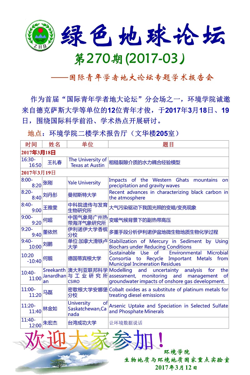 华中科技刮刮卡 2017年第一期环境论坛(邀请专家:Bruce E. Logan)