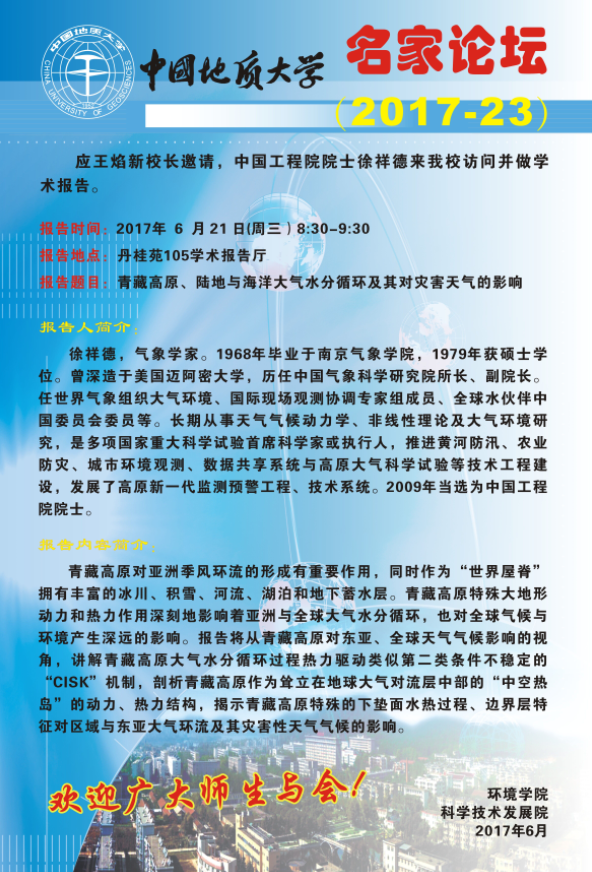 题目:青藏高原、陆地与海洋大气水分循环及其对灾害天气的影响