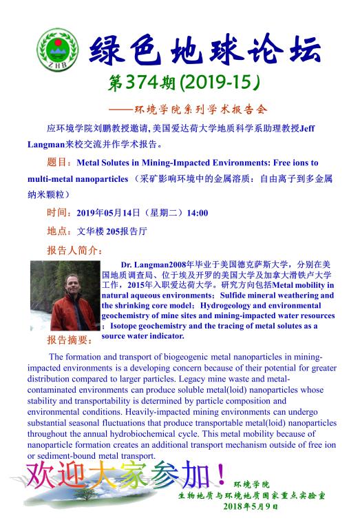 题目:  Metal Solutes in Mining-Impacted Environments: Free ions to multi-metal nanoparticles