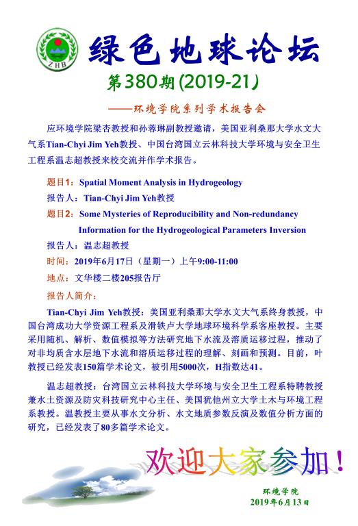 美国亚利桑那刮刮卡 Tian-Chyi Jim Yeh教授和中国台湾国立云林科技刮刮卡 温志超教授学术报告