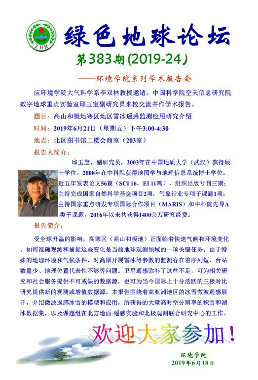 中国科刮刮卡 空天信息研究院数字地球重点实验室邱玉宝副研究员学术报告