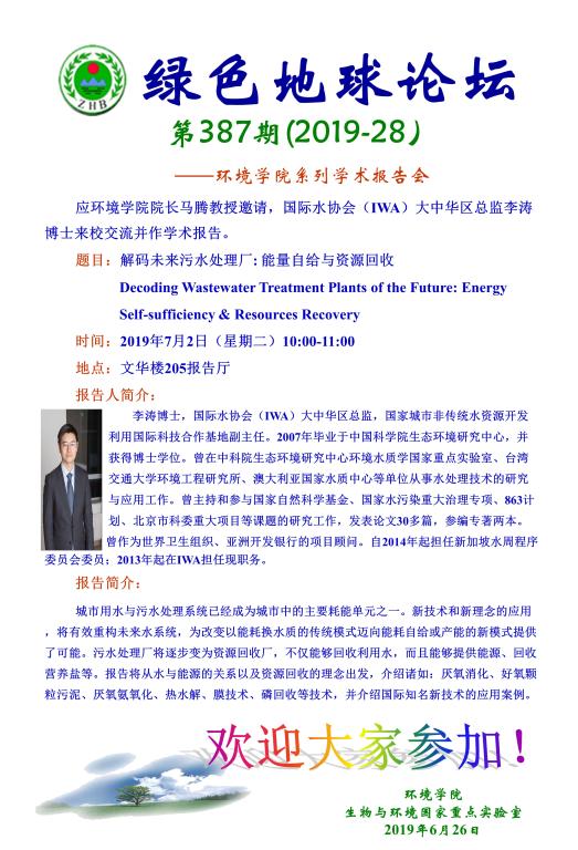 国际水协会(IWA)大中华区总监李涛博士学术报告