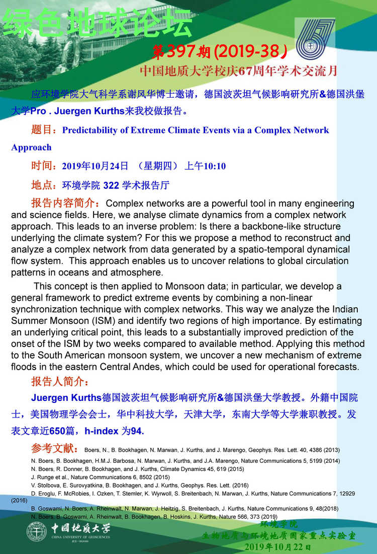 德国波茨坦气候影响研究所&德国洪堡刮刮卡 Pro . Juergen Kurths学术报告。