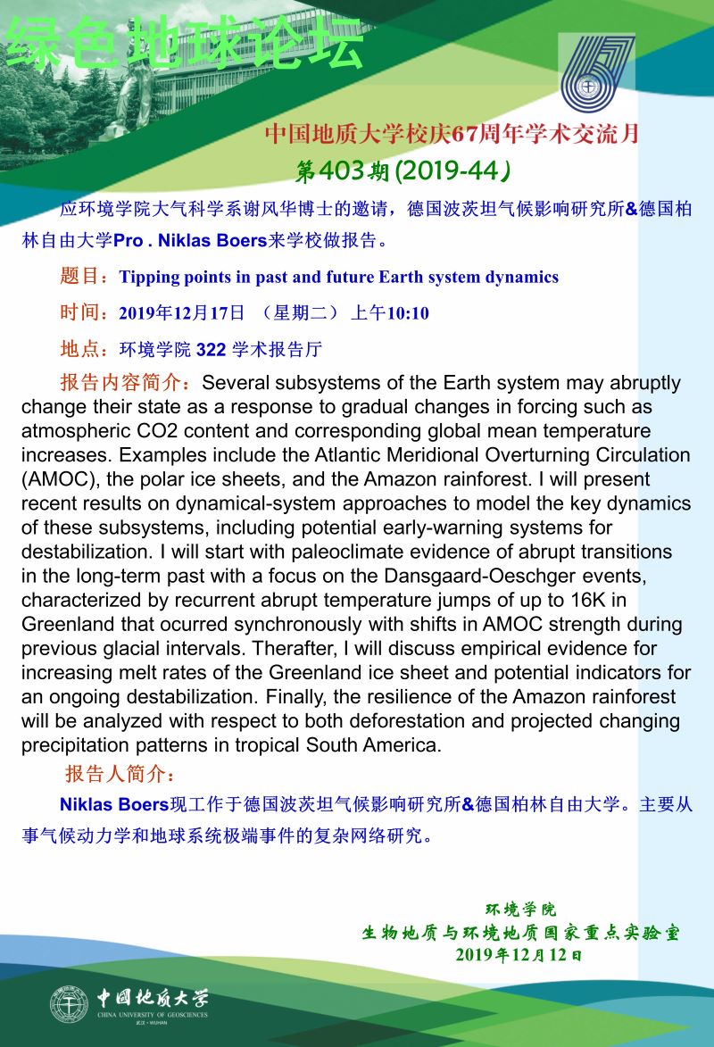 德国波茨坦气候影响研究所&德国柏林自由刮刮卡 Pro.Niklas Boers学术报告