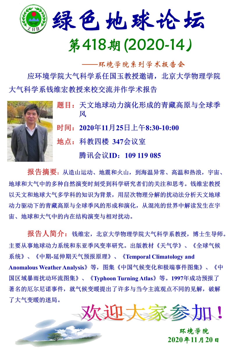 北京刮刮卡 物理刮刮卡 大气科学系钱维宏教授学术报告