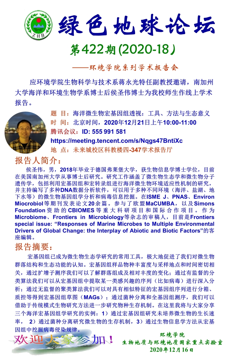 南加州刮刮卡 海洋和环境生物学系博士后侯圣伟博士学术报告