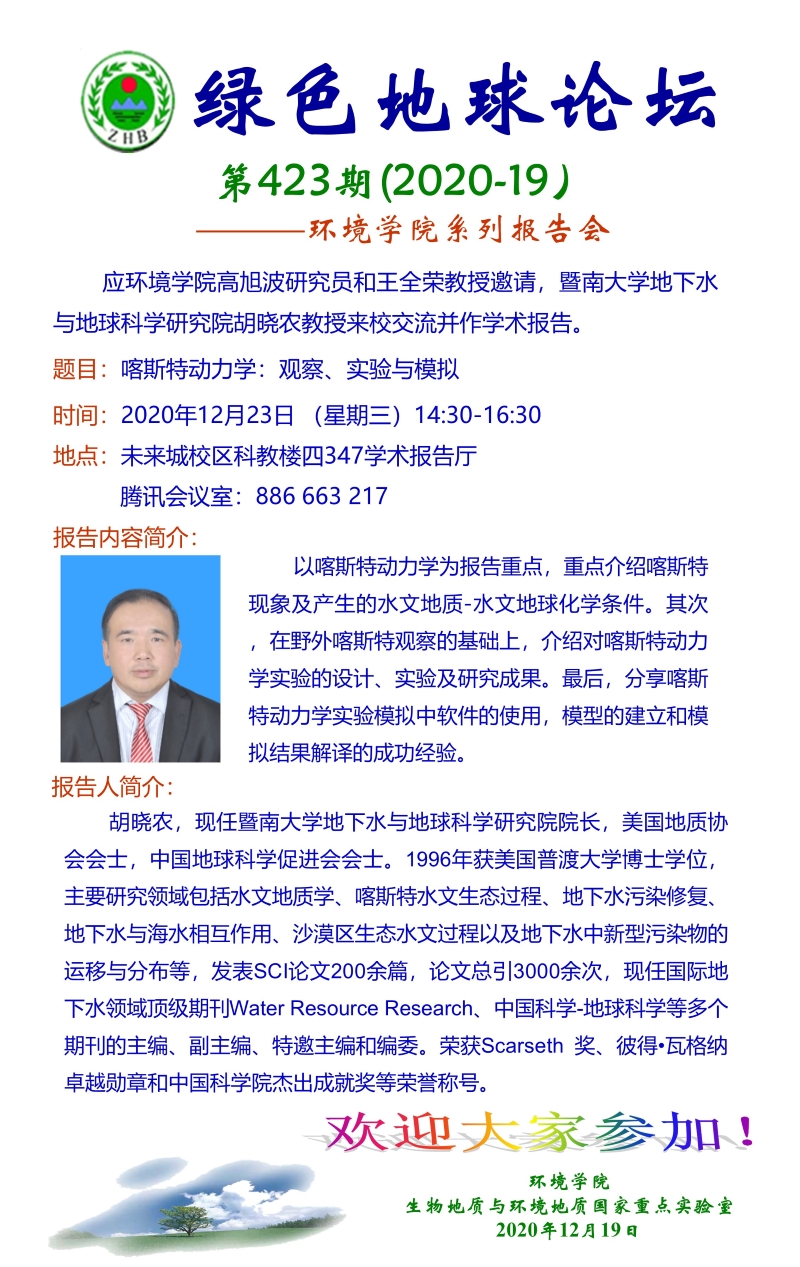 暨南刮刮卡 地下水与地球刮刮卡研究 院胡晓农教授学术报告
