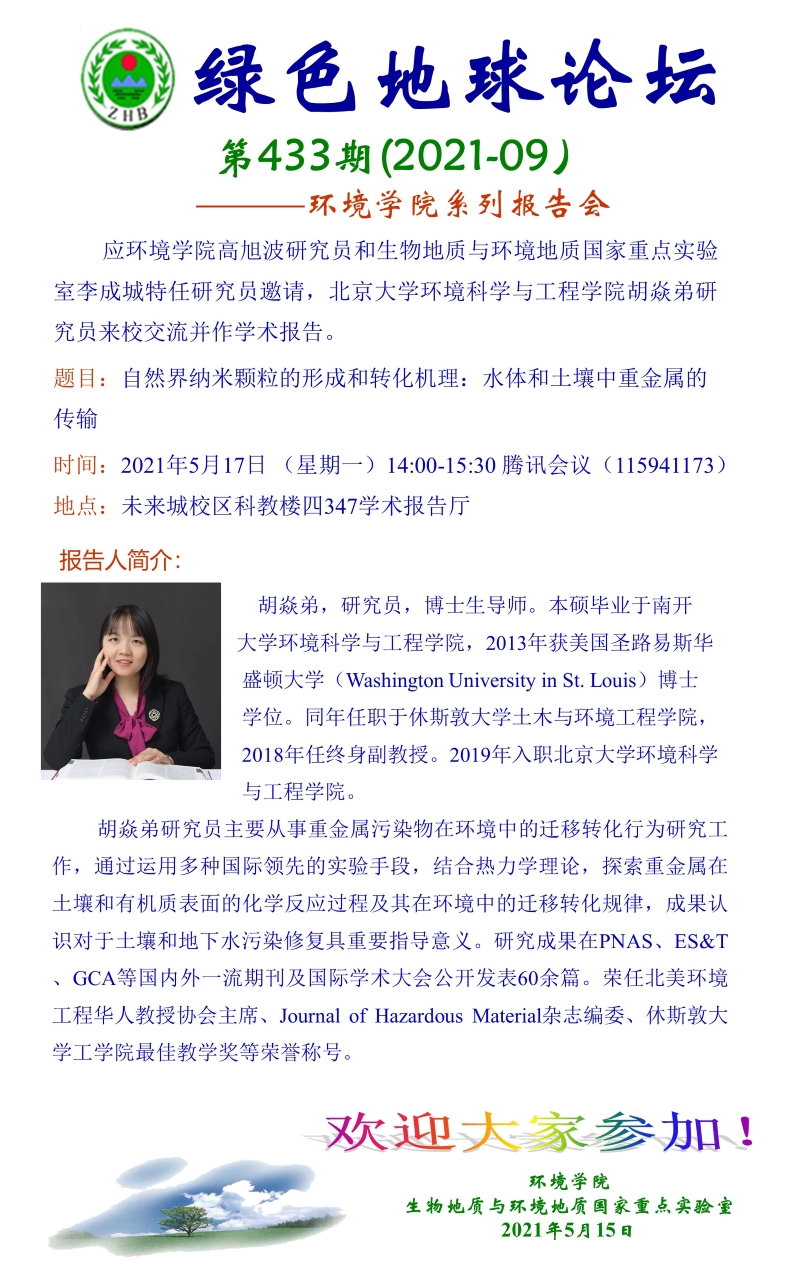 北京刮刮卡 环境科学与工程刮刮卡 胡焱弟研究员学术报告