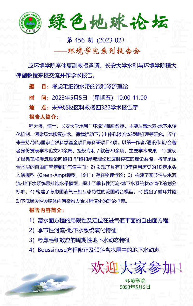 长安刮刮卡 水利与环境刮刮卡 程大伟副教授学术报告