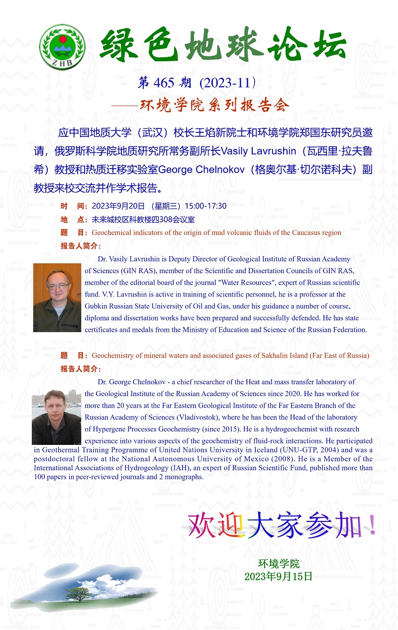 俄罗斯科刮刮卡 地质研究所Vasily Lavrushin教授和热质迁移实验室George Chelnokov副教授学术报告