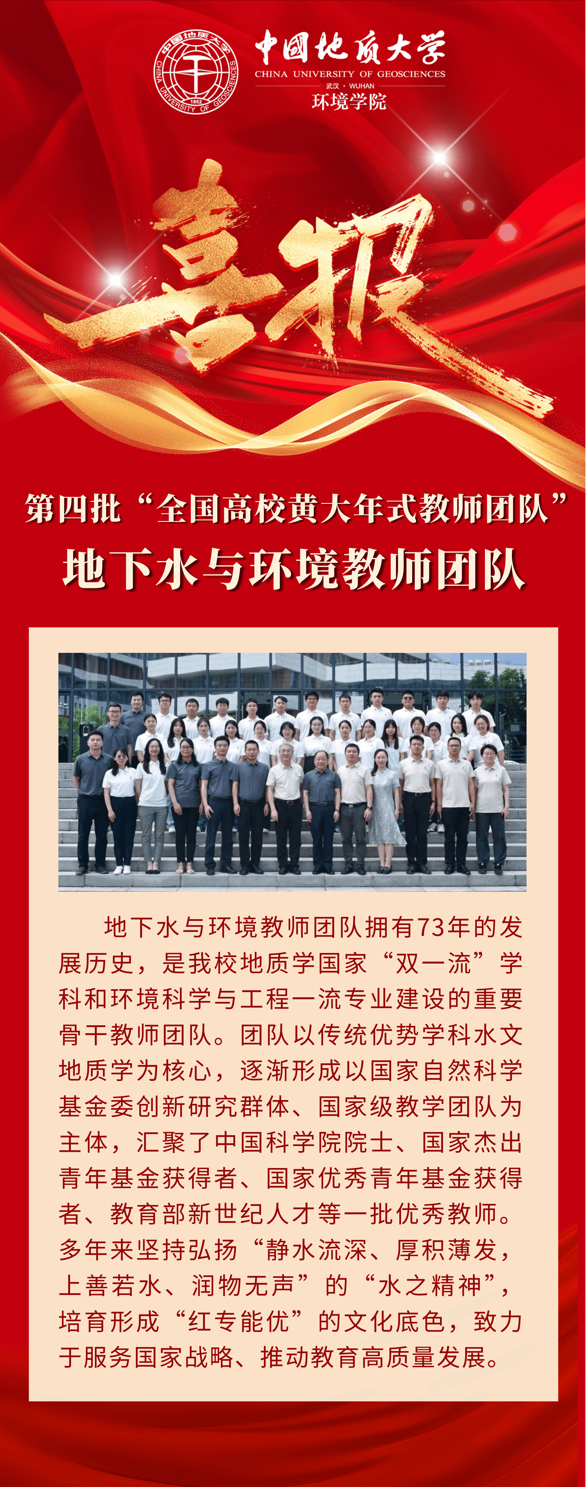 通讯员/编辑申墁烨)近日,教育部公布第四批“全国高校黄大年式教师团队”创建示范活动入围名单,刮刮卡 地下水与环境教师团队入选。